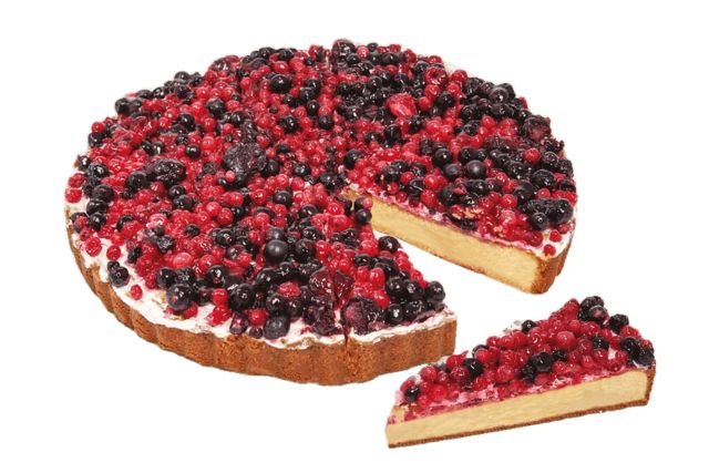 Currants 22%, water, wheat flour, glucose syrup, sugar, blueberries 5%, margarine (palm fat, sunflower oil, water, emulsifier [e471], salt, flavourings), sponge cake (wheat flour, eggs pasteurized whole, sugar, water, emulsifier [e471], potato starch, raising agents [e450i, e500ii], salt), vegetable fats in variable proportions (coconut, palm kernel, palm), pasteurized egg yolk, powdered sugar (dextrose, sugar, wheat starch, cocoa butter), skimmed milk powder, cream, sorbitol syrup, modified corn starch, concentrated red fruit juice 0.4% (apple, elderberry, red currant, raspberry), butter, eggs pasteurized whole, animal gelatine, stabilizers [e406, e440ii], glucose-fructose syrup, milk proteins, raising agents [e450i, e500ii], rice starch, flavourings, emulsifiers [e471, soy lecithin], salt, acidity regulator [e330], black carrot extract, potato vegetable fibres, thickeners [e401, e410], corn starch.