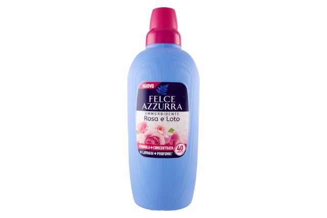 Felce Azzurra Fabric Softener – Rosa e Loto (2000ml) delicately perfumes your laundry with the floral and soothing scent of rose and lotus. Its concentrated formula ensures fabrics stay soft, smooth, and pleasantly fragrant after every wash.