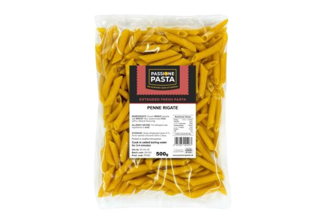 Penne Rigate (500g) are one of Italy’s most iconic pasta shapes, made with 22% egg for a rich flavour and golden colour. At around 45mm in length, their ridged surface and diagonal cut make them perfect for holding sauces — from simple tomato and basil to creamy or meaty ragù.