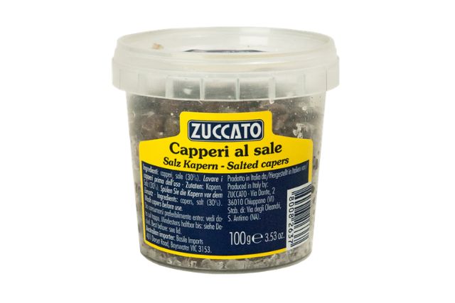 Zuccato Capers in Salt are carefully selected capers preserved in salt to maintain their intense aroma and authentic Mediterranean flavor.